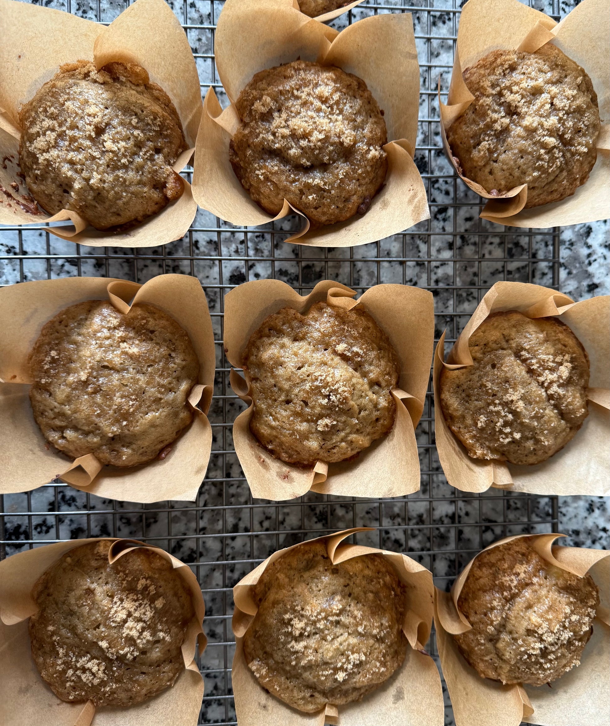 Packed with fresh banana and topped with a brown sugar crumble. My spin on your fav banana bread, just in a muffin!